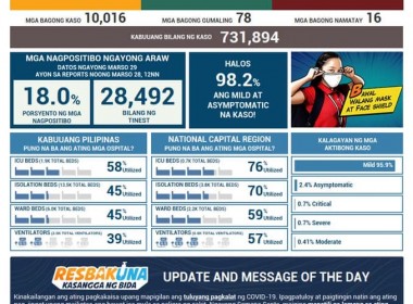 (Eagle News) — Philippine COVID-19 cases reached 731,894 on Monday, March 29, after the Department of Health reported 10,016 additional cases. The additional cases reported today represent the most COVID-19 cases reported by the Philippines in a single day since the pandemic began. It is close to the prediction made by the Octa research group: According to the independent research team, if the surge in COVID-19 cases continues unabated, daily COVID-19 cases could hit 11,000 […]