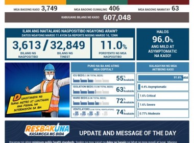 (Eagle News) — The number of active COVID-19 cases in the Philippines reached 47,769 on Thursday, March 11, after the Department of Health reported 3,749 additional cases. This is the highest number of COVID-19 additional cases reported in a day this year. Prior to this, the highest daily count in 2021 was at 3,439 on March 6. According to DOH data, of the active cases, 91.6 percent were mild, 4.4 percent asymptomatic, 1.6 percent were […]