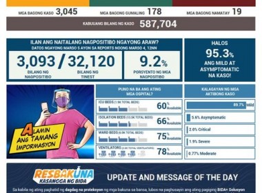 PHL COVID-19 tally reaches 587,704 with addition of 3,045 COVID-19 cases