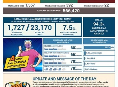 PHL COVID-19 cases reach 566,420 with 1,557 additional ones