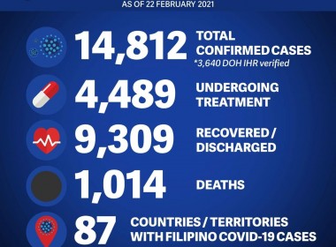 (Eagle News)–Eleven more COVID-19 cases have been reported among overseas Filipinos. The Department of Foreign Affairs said the additional COVID-19 cases pushed the COVID-19 total among overseas Filipinos to 14812. Eight additional recoveries pushed the COVID-19 recovery total among Filipinos abroad to 9309. No additional fatality was reported, so the COVID-19 death toll remains at 1,014. The DFA said the Middle East and Africa are still the regions with the most COVID-19 cases, recoveries and […]