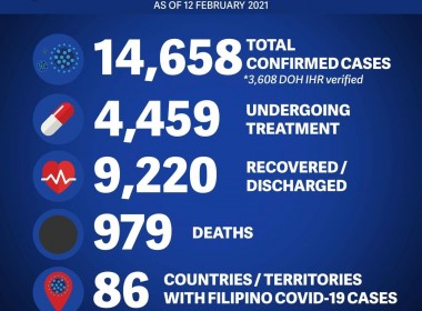 (Eagle News) — One hundred more overseas Filipinos have tested positive for COVID-19. The Department of Foreign Affairs said the additional cases pushed the COVID-19 cases among Filipinos abroad to 14658. Sixty-five additional recoveries also pushed the recovery total to 9220. One additional death was reported, bringing the COVID-19 death toll among Filipinos outside the Philippines to 979. “The reported spike is due to another surge in COVID-19 cases reported in one country in Europe,” […]