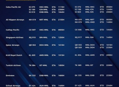 (Eagle News) — The Manila International Airport Authority has released its list of operational commercial flights for Thursday, Feb. 11: Flight schedules may change at any given time. MIAA advised all passengers to secure confirmation of their flights on the day they are supposed to be scheduled. MIAA said only those with the confirmation will be allowed entry into the airport. The government has eased travel restrictions imposed on over 30 countries with reported COVID-19 […]