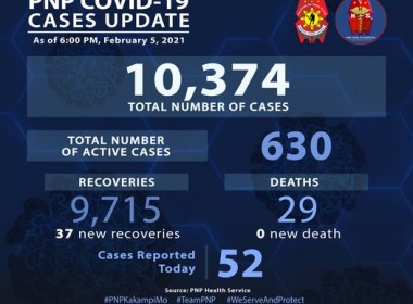 (Eagle News) — Thirty-seven more police personnel have recovered from COVID-19. The Philippine National Police said the additional recoveries pushed the COVID-19 recovery total to 9715. Fifty-two additional cases, however, also pushed the PNP COVID-19 tally to 10374. Of these, based on PNP data, 630 were active. No additional COVID-19 deaths among PNP personnel were reported, which means the death toll remains at 29. The government is gearing up for its COVID-19 national vaccination program […]