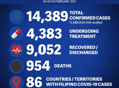 (Eagle News) — Over 300 more overseas Filipinos have tested positive for COVID-19. The Department of Foreign Affairs said the 348 additional cases pushed the COVID-19 cases among overseas Filipinos to 14,389. Eighty-eight more have recovered, pushing the recovery total to 9,052, based on DFA data. “The reported spike is due to increase in cases in Europe as well as late reports owing to privacy concerns in the Middle East and Africa,” the DFA said. […]