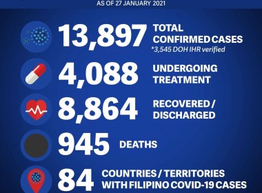 (Eagle News)–Forty more COVID-19 cases have been reported among overseas Filipinos. The Department of Foreign Affairs said the additional cases pushed the COVID-19 case tally among Filipinos abroad to 13,897. Nineteen more have recovered, bringing the COVID-19 recovery total to 8,864. No additional fatalities were reported, which means the COVID-19 death toll among overseas Filipinos remains at 945. Based on DFA data, the Middle East and Africa were the regions with the most COVID-19 cases, […]