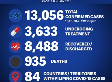 (Eagle News) — Thirty-four more COVID-19 cases have been reported among overseas Filipinos. The Department of Foreign Affairs said with the additional cases, the COVID-19 total among Filipinos abroad rose to 13056. Twenty-seven more have recovered, pushing the recovery total to 8488. No additional death was reported, which means the death toll remains at 935. The Middle East and Africa are still the regions with the most COVID-19 cases, recoveries and deaths among Filipinos abroad, […]