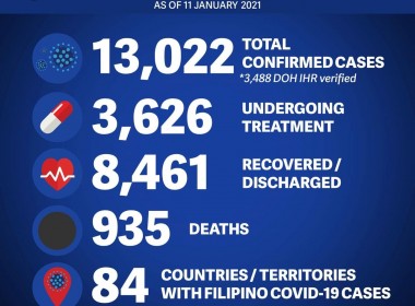 (Eagle News) — Four more overseas Filipinos have contracted COVID-19. The Department of Foreign Affairs said the additional cases pushed the COVID-19 tally among Filipinos abroad to 13,022. Recoveries also climbed to 8461, including the additional one. An additional death pushed the COVID-19 death toll to 935. According to the DFA, the Middle East and Africa are still the regions with the most COVID-19 cases, recoveries and deaths among overseas Filipinos, with 7716, 4691, and […]