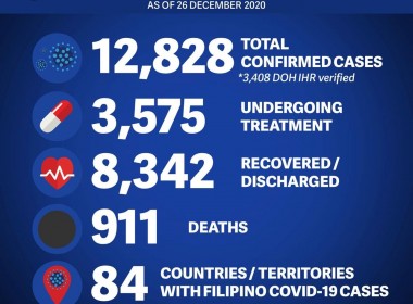 (Eagle News) — One more Filipino abroad has recovered from COVID-19. The Department of Foreign Affairs said with the additional recovery, the COVID-19 recovery total among Filipinos overseas rose to 8342. There were no additional COVID-19 cases nor deaths based on the single report from a DFA post. That means the total COVID-19 cases among Filipinos abroad remains at 12828. The death toll was still at 911. The DFA said the Middle East and Africa […]