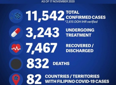 (Eagle News)–Fourteen more overseas Filipinos have tested positive for COVID-19. The Department of Foreign Affairs said with the additional cases, the total confirmed COVID-19 cases among Filipinos abroad rose to 11,542. Four additional recoveries pushed the recovery tally to 7467. One additional death was reported, bringing the death toll to 832. The DFA said the Middle East and Africa region still had the most COVID-19 cases, recoveries and deaths–with 7530,4652 and 547, respectively. The Americas […]