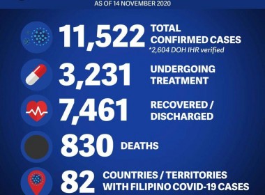 (Eagle News)–Three more COVID-19 cases have been reported among overseas Filipinos. The Department of Foreign Affairs said with the additional cases, the total rose to 11522. There was no new fatality nor recovery, which means the total of each category remains at 830 and 7461, respectively. The DFA said the Middle East and Africa region still has the most COVID-19 cases, recoveries and deaths, at 7518, 4648 and 545, respectively. The Americas have the least […]