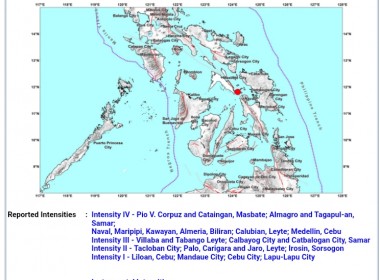 (Eagle News)–A 5.0-magnitude earthquake struck Masbate on Sunday, Nov. 15. The Philippine Institute of Volcanology and Seismology said the quake, which hit at 2:35 p.m., had its epicenter 18 kilometers southeast of Pio V. Corpuz. It had a depth of 18 kilometers. The following intensities and instrumental intensities were recorded: Intensities: Intensity IV – Pio V. Corpuz and Cataingan, Masbate; Almagro and Tagapul-an, Samar; Naval, Maripipi, Kawayan, Almeria, Biliran; Calubian, Leyte; Medellin, Cebu Intensity III […]
