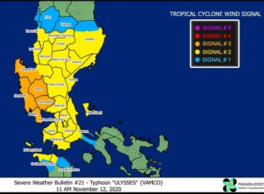 (Eagle News)–Typhoon “Ulysses” has maintained its strength and is now over the West Philippine Sea. The Philippine Atmospheric Geophysical and Astronomical Services Administration said Signal No. 3 remains in effect over the western portion of Pangasinan (Bayambang, Bautista, Alcala, Santo Tomas, Malasiqui, Santa Barbara, Mangaldan, Dagupan City, Basista, San Carlos City, Calasiao, Binmaley, Urbiztondo, Mangatarem, Aguilar, Bugallon, Lingayen, Labrador, Infanta, Mabini, Sual, Dasol, Burgos, Alaminos City, Agno, Bani, Bolinao, Anda), Zambales, Bataan, Tarlac, and Pampanga […]