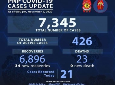 (Eagle News)–Thirty-four more police personnel have recovered from COVID-19. The Philippine National Police said with the additional recoveries, the recovery tally rose to 6896. Twenty-one more cases pushed the total to 7345. Of these, 426 were active. There was no additional death, which means the death toll remains at 23. The police continue to man checkpoints and enforce laws, making them one of the country’s frontliners amid the pandemic. PNP Chief Camilo Cascolan has said […]