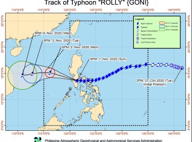 (Eagle News) — Typhoon “Rolly” continued to weaken and is now over the West Philippine Sea, according to PAGASA. In its 8 p.m. bulletin, the country’s weather bureau said the typhoon is even forecast to weaken into a into severe tropical storm category in the next 24 hours, and exit the Philippine Area of Responsibility (PAR) by Tuesday) morning, Nov.3. The typhoon will move generally west-northwestward or westward tonight while moving over the West […]