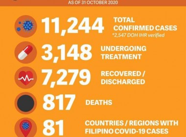 (Eagle News)–Seventeen more overseas Filipinos have recovered from COVID-19. The Philippine Atmospheric Geophysical and Astronomical Services Administration said with the additional recoveries, the total rose to 7279. Five new COVID-19 cases, however, pushed the total to 11244. There was no death reported, which means the death toll remains at 817. So far, the Middle East and Africa are still the regions with the most COVID-19 cases, deaths and recoveries, with 7380, 532, and 4542, respectively. […]