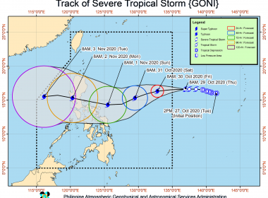 PAGASA monitoring a tropical depression east of Mindanao (Eagle News) — Severe Tropical Storm “Goni” may enter the Philippine Area of Responsibility this afternoon or evening. The Philippine Atmospheric Geophysical and Astronomical Services Administration said so far, “Goni” was estimated 1,545 kilometers east of Central Luzon, and is moving west at 10 kph. Once it enters PAR, it will be called “Rolly,” the weather bureau said. According to PAGASA, “Goni” is forecast to reach the […]
