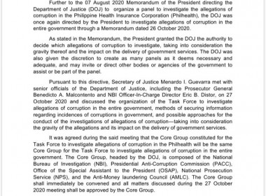 (Eagle News)–The Department of Justice will invite the Commission on Audit, the Civil Service Commission and the Ombudsman in the probe of corruption in the entire government. The Department of Justice made the revelation as it announced the task force that would conduct the probe was the same task force that probed the allegations of corruption in PhilHealth. That task force recommended the filing of charges against incumbent and former PhilHealth officials, including then-PhilHealth chief […]