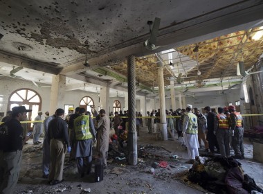 PESHAWAR, Pakistan (AFP) — At least seven students were killed and scores more wounded Tuesday in a bomb attack on a Koran study class at a religious school in northwestern Pakistan, officials said. More than 60 people had been taking a lesson when the explosion tore through the madrassa in Peshawar, about 170 kilometres (around 100 miles) west of Islamabad, said Waqar Azim, a senior police official. “The blast took place in a seminary […]