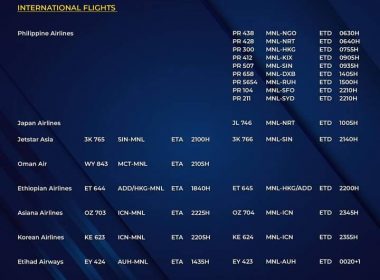 (Eagle News)–The Manila International Airport Authority has released its list of operational commercial flights for Saturday, Oct. 24: Flight schedules may be subject to changes. Passengers have been advised to confirm their flights on the day they are supposed to be scheduled. MIAA had said only those with the confirmation will be allowed entry into the airport premises. Domestic flight operations are subject to the requirements given by the local government unit that has jurisdiction […]