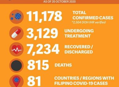 26 more COVID-19 cases, 3 additional deaths reported (Eagle News)–Thirty-three more Filipinos abroad have recovered from COVID-19. The Department of Foreign Affairs said with the development, the recovery tally among overseas Filipinos rose to 7234 as of Tuesday. Twenty-six more COVID-19 cases, however, pushed the COVID-19 tally to 11,178. The death toll also rose to 815, including the three additional reported. The Middle East and Africa are still the regions with the most COVID-19 cases, […]