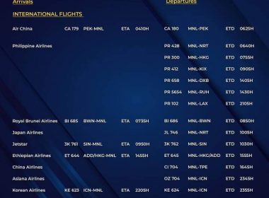 (Eagle News)–The Manila International Airport Authority has released its list of operational commercial flights for Tuesday, Oct. 20: Flight schedules may be subject to changes. Earlier, MIAA advised passengers to get confirmation of their flights on the day they are supposed to be scheduled. It said only those with the confirmation will be allowed entry into the airport premises. Domestic flights are allowed but passengers need to comply with the requirements set forth by the […]