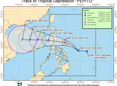 (Eagle News)—Signal No. 1 has been raised over several areas as Tropical Depression “Pepito” accelerated west on Monday morning while maintaining its strength. In its recent advisory, the Philippine Atmospheric Geophysical and Astronomical Services Administration said under Signal No. 1 are the eastern portion of Isabela (Palanan, Dinapigue, the eastern portion of San Mariano) and the northern portion of Aurora (Dinalungan, Casiguran, Dilasag). “Pepito,” PAGASA said, was estimated 475 kilometers east of Virac, Catanduanes, packing […]