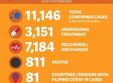 (Eagle News)–No additional COVID-19 death was reported among overseas Filipinos recently. The Department of Foreign Affairs said the death toll therefore remained at 811. An additional COVID-19 case pushed the total to 11,146. Recoveries remained at 7184 as no additional recovery was reported. “Compared to last week’s percentages, the total number of COVID-19 fatalities and those under treatment slightly decreased to 7.28 percent and 28.72 percent, respectively, while the total number of recoveries saw […]
