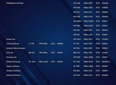 (Eagle News)–The Manila International Airport Authority has released its list of operational commercial flights for Friday, Oct. 16: Flight schedules may be subject to changes at any given time. Earlier, MIAA advised passengers to get confirmation of their flights on the day they are supposed to be scheduled. MIAA said only those with the confirmation will be allowed entry into the airport premises. Although domestic flights are allowed, these are subject to the requirements imposed […]