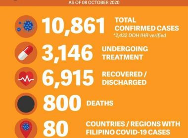 (Eagle News)–Ten more overseas Filipinos have recovered from COVID-19. The Department of Foreign Affairs said with the additional recoveries, the number of Filipinos abroad who recovered from the disease rose to 6915. The DFA said 12 additional COVID-19 cases, however, pushed the tally to 10861. No new death was reported, which means the death toll remains at 899. Of the regions, the Middle East and Africa region still had the most COVID-19 cases, recoveries and […]