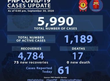 (Eagle News)–Seventy-five more recoveries have been reported among police personnel. The Philippine National Police said with the 75 new recoveries, the recovery tally rose to 4784. Sixy-one COVID-19 cases pushed the tally to 5990. Of these, 1189 were active. There were no additional COVID-19 deaths, which means the death toll remains at 17. PNP Chief Camilo Cascolan has said policemen on modified enhanced community quarantine and enhanced community quarantine duty were entitled to COVID-19 hazard […]