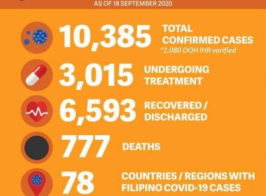 (Eagle News)–There have been no latest reports of additional COVID-19 deaths among overseas Filipinos, the Department of Foreign Affairs said on Friday, Sept. 18. The DFA said the death toll due to COVID-19 among Filipinos abroad then remains at 777. The Middle East and Africa still had the most deaths, with 496, followed by the Americas with 178, Europe with 98, and the Asia Pacific region with eight. Twenty-five new confirmed cases pushed the total […]