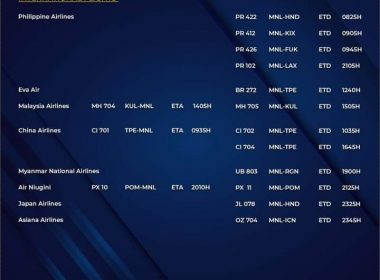 (Eagle News)–The Manila International Airport Authority has released its list of operational commercial flights for Sunday, Sept. 13: Flight schedules may be subject to changes. Earlier, MIAA said passengers should get confirmation of their flights on the day they are supposed to be scheduled as only those with the confirmation will be allowed to enter the airport premises. Domestic flights are allowed with Metro Manila under a general community quarantine but these were subject to […]