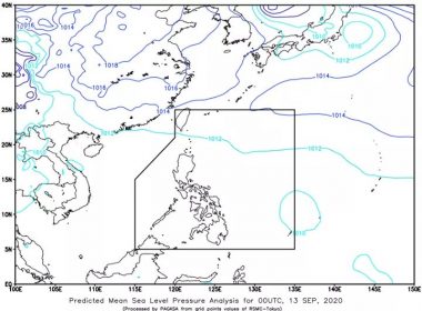 Rainshowers expected in parts of country due to easterlies, localized thunderstorms (Eagle News)–The Philippine Atmospheric Geophysical and Astronomical Services Administration said the low pressure area it was monitoring off Northern Luzon is now in the vicinity of Botolan, Zambales. PAGASA said the easterlies were also affecting Davao region and Caraga, which means cloudy skies with scattered rainshowers are expected in those areas. The weather bureau said the rest of Mindanao will have partly cloudy to […]