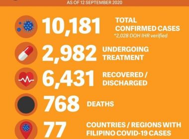(Eagle News)–There have been no recent reports of additional COVID-19 deaths among overseas Filipinos. The Department of Foreign Affairs said this means that as of Saturday night, the death toll remains at 768. The Middle East and Africa still had the most number of deaths among Filipinos abroad with 487, followed by the Americas with 178, Europe with 95, and the Asia Pacific region with eight. Thirteen additional COVID-19 cases brought the total to 10,181, […]