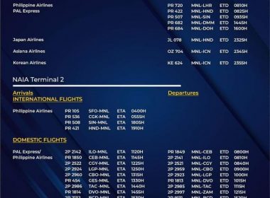 (Eagle News)–The Manila International Airport Authority has released its list of operational commercial flights for Monday, Sept. 7: Flight schedules may be subject to changes. MIAA earlier advised passengers to get a confirmation of their flights on the day they are supposed to be scheduled. It said only those with the confirmation will be allowed entry into the airport premises. Domestic flights are allowed with Metro Manila under a general community quarantine. Restrictions on international […]