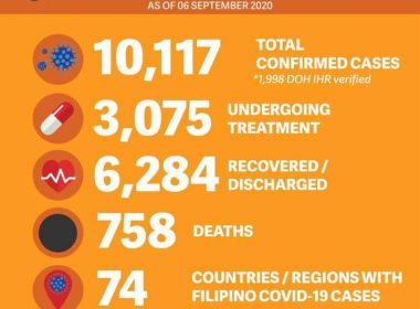 (Eagle News)–The Department of Foreign Affairs has reported an additional COVID-19 case among overseas Filipinos over the weekend. With the additional case, the total tally rose to 10,117, based on September 6 data, the DFA said. No new recovery was reported, which means the total remains at 6284. The death toll is at 758, with no additional deaths reported from foreign service posts. The DFA said so far, the Middle East and Africa had the […]