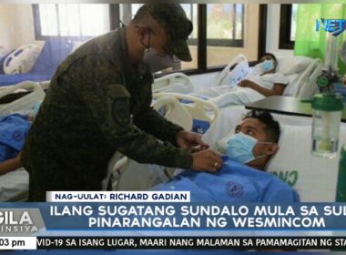 https://www.youtube.com/watch?v=OpUJsStoVBE Ni Richard Gadian Eagle News Service (Eagle News) – Pinarangalan ng Armed Forces Western Mindanao Command (WestMinCom) ang ilang tauhan ng Sulu Taskforce na nasugatan sa mga magkahiwalay na engkwentro sa probinsiya ng Sulu. Mismong si WestMinCom commander Maj. Gen. Corleto Vinluan ang naggawad ng mga parangal sa loob ng Camp Navarro General Hospital sa kampo ng militar sa Upper Calarian, Zamboanga City. Nakatanggap ng parangal sina Cpl. Jonathan Garsuta at Cpl. Romel Mendoza […]