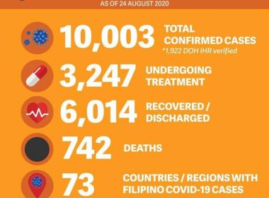 (Eagle News)–The number of confirmed COVID-19 cases among overseas Filipinos breached the 10,000 mark–now at 10,003– with 19 additional cases in the Middle East. The DFA said the number of recoveries as of Monday also rose to 6014 after 61 new recoveries were reported from Asia and the Pacific, Europe, and the Middle East. “As the DFA personnel in our (foreign service posts) continue to monitor the status of our Filipino community abroad and work […]