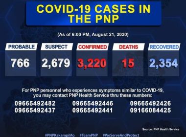(Eagle News)–The Philippine National Police has reported 67 more COVID19 cases among police personnel, bringing the total to 3220. According to PNP data as of Friday night, 71 more recoveries pushed the tally to 2354. No additional deaths have been reported, with the total still at 15. The PNP has reported 2679 suspect cases and 766 probable cases. Policemen are also the country’s frontliners, and continue to assist the government in the implementation of health […]