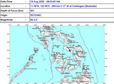 (Eagle News) — A magnitude 6.5 quake rocked Masbate at 8:03 a.m. Tuesday, Aug. 18, which was felt at various intensities in surrounding provinces. The epicenter of the tectonic quake with only a depth of focus of one kilometer was located five kilometers southwest of Cataingan, Masbate, according to the Philippine Institute of Volcanology and Seismology (PHIVOLCS). PHIVOLCS said it was expecting aftershocks and damages. The strong quake was relatively shallow, occurring near the […]