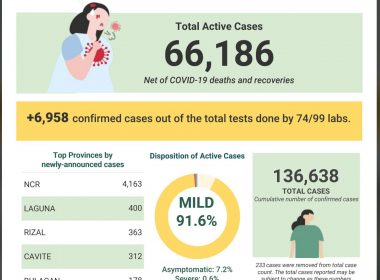 (Eagle News) — The Philippines’ total COVID-19 cases continued to spike, reaching 136,638 cases, with the addition of a new record-high of almost 7,000 new cases on Monday, Aug. 10. With this number, the country continued to lead in number of cases in Southeast Asia, widening its margin with Indonesia which has the second highest number of cases at 127.083. The Philippines has 9,555 cases more than Indonesia. New cases added on Monday were […]
