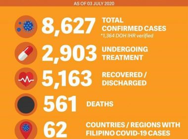 (Eagle News)–The Department of Foreign Affairs has confirmed 13 new COVID-19 cases among overseas Filipinos, bringing the total to 8627. The DFA said the additional 13 was based on reports from four countries across geographical regions, including a country from the Americas where the cases were confirmed, as of July 3. With the confirmation, the number of countries or regions where there are Filipino COVID-19 cases reaches 62. The DFA said the Middle East is […]
