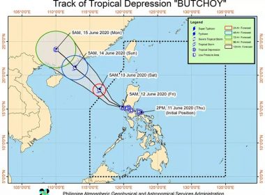 (Eagle News)–“Butchoy” is expected to intensify into a tropical storm in 24 hours, the Philippine Atmospheric Geophysical and Astronomical Services Administration said on Friday, June 12. PAGASA made the forecast even as the tropical cyclone wind signal number 1 earlier hoisted over Zambales and parts of Pangasinan have been lifted. According to PAGASA, as of 10 a.m., the center of “Butchoy” was estimated 140 km west northwest of Iba, Zambales or 165 km west of […]
