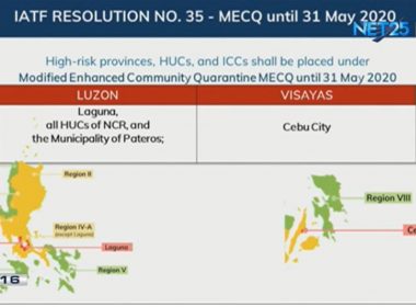 Palace releases list of areas under modified ECQ, GCQ; Metro Manila, Laguna, Pateros, Cebu City under modified ECQ starting May 16
