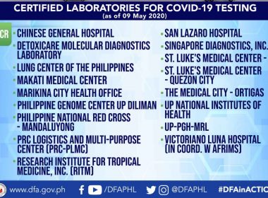 (Eagle News) — There are now 26 government certified laboratories and facilities that can do COVID-19 tests, increasing the country’s capacity for further virus test processing. The latest to be added was the state-of-the-art Asian Development Bank (ADB)-funded Molecular and Diagnostic Pathology Laboratory of the Jose B. Lingad Memorial General Hospital (JBLMGH) in San Fernando, Pampanga which was inaugurated on Saturday, May 9, 2020. JBLMGH was the recipient of the US2.5 million dollar-grant from the […]