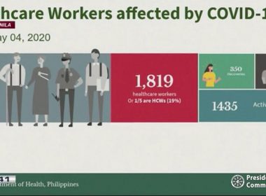 (Eagle News) – The number of health care workers infected with COVID-19 is now 1,819, the Department of Health (DOH) reported on Tuesday, May 5. In a virtual presser, DOH Undersecretary Maria Rosario Vergeire said that this includes 685 nurses, 590 doctors, 107 nursing assistants, 70 medical technologists, 34 radiologic technologists, 21 midwives, 20 respiratory therapists, 15 pharmacists, and 277 other healthcare workers. “Nitong mga nakaraang araw ay paunti na nang paunti ang nakikita natin […]