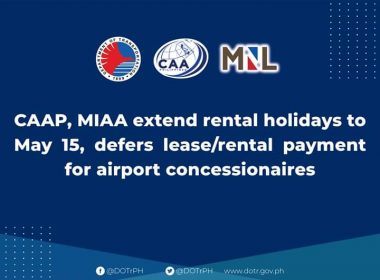(Eagle News)–The Manila International Airport Authority and the Civil Aviation Authority of the Philippines have extended the deferment of the collection of fees and charges from its airport concessionaires. CAAP Director General Jim Sydiongco announced that the extension of the deferment to May 15 applies to lease or rental fees, the Department of Transportation said. A “rental holiday” was initially granted from March 15 to April 30. The collection of landing/take-off and parking fees for […]