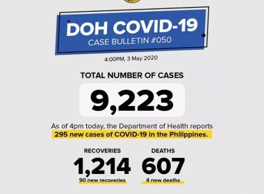 (Eagle News)–The number of coronavirus disease 2019 cases in the country has breached the 9000 mark, with the addition of 295 cases. The Department of Health on Sunday, May 3, said with the new cases, COVID19 cases in the country now stand at 9223. Recoveries continued to widen, at 1214, with 90 new ones. Deaths have reached 604, with the addition of four. The DOH has said it was too early to say the country […]
