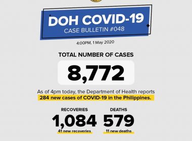 (Eagle News) — The number of coronavirus disease 2019 cases in the country has risen to 8772 after the Department of Health reported 284 new cases on Friday, May 1. According to the DOH, the number of recoveries continues to increase, now at 1084 with 41 additional ones. Eleven new deaths were reported, bringing the total to 579. Today marks the start of the easing of restrictions in some areas under a general community quarantine. […]